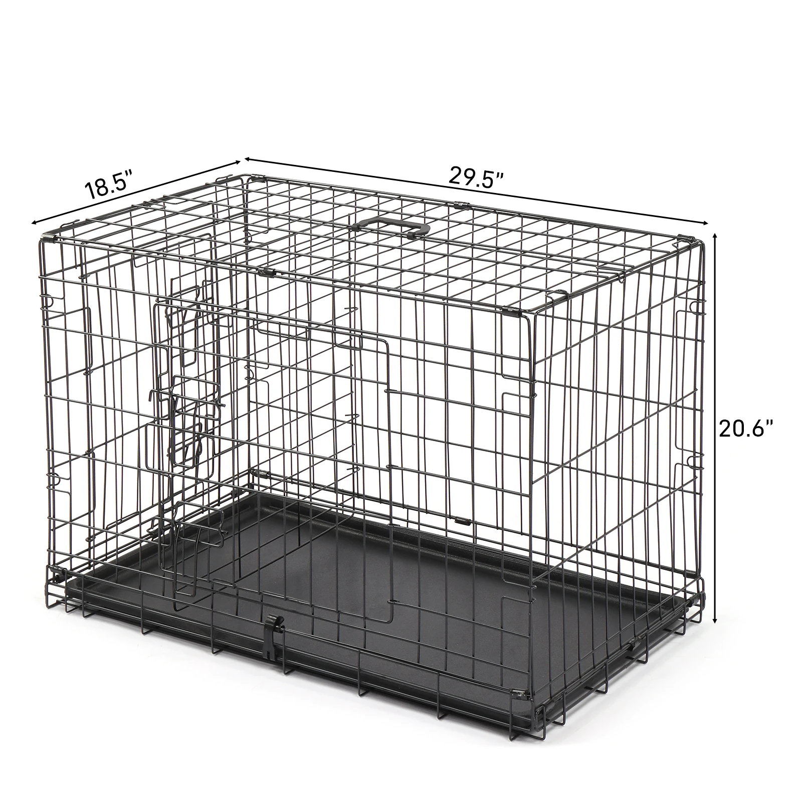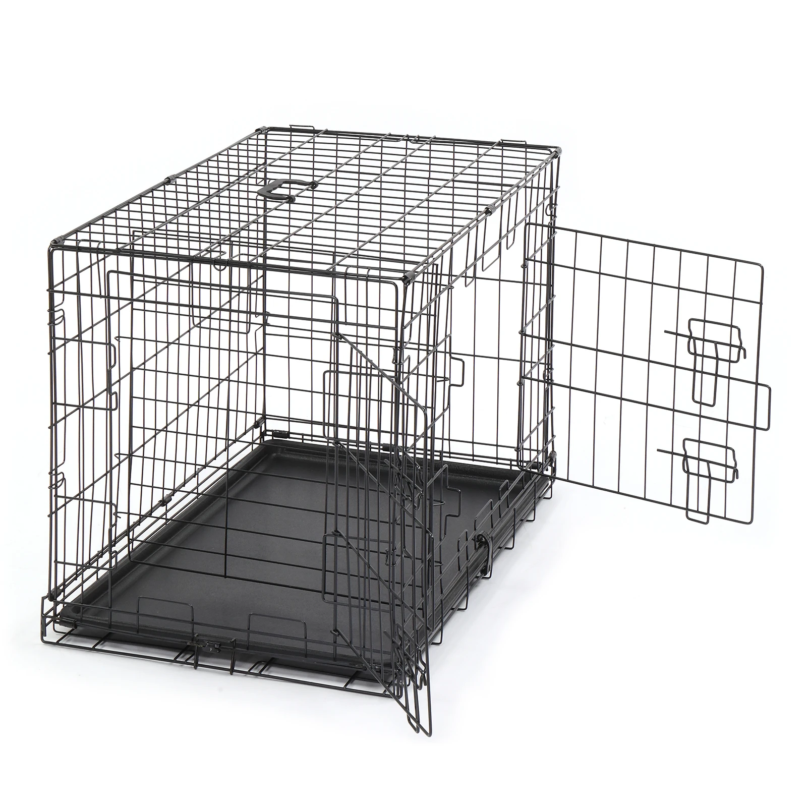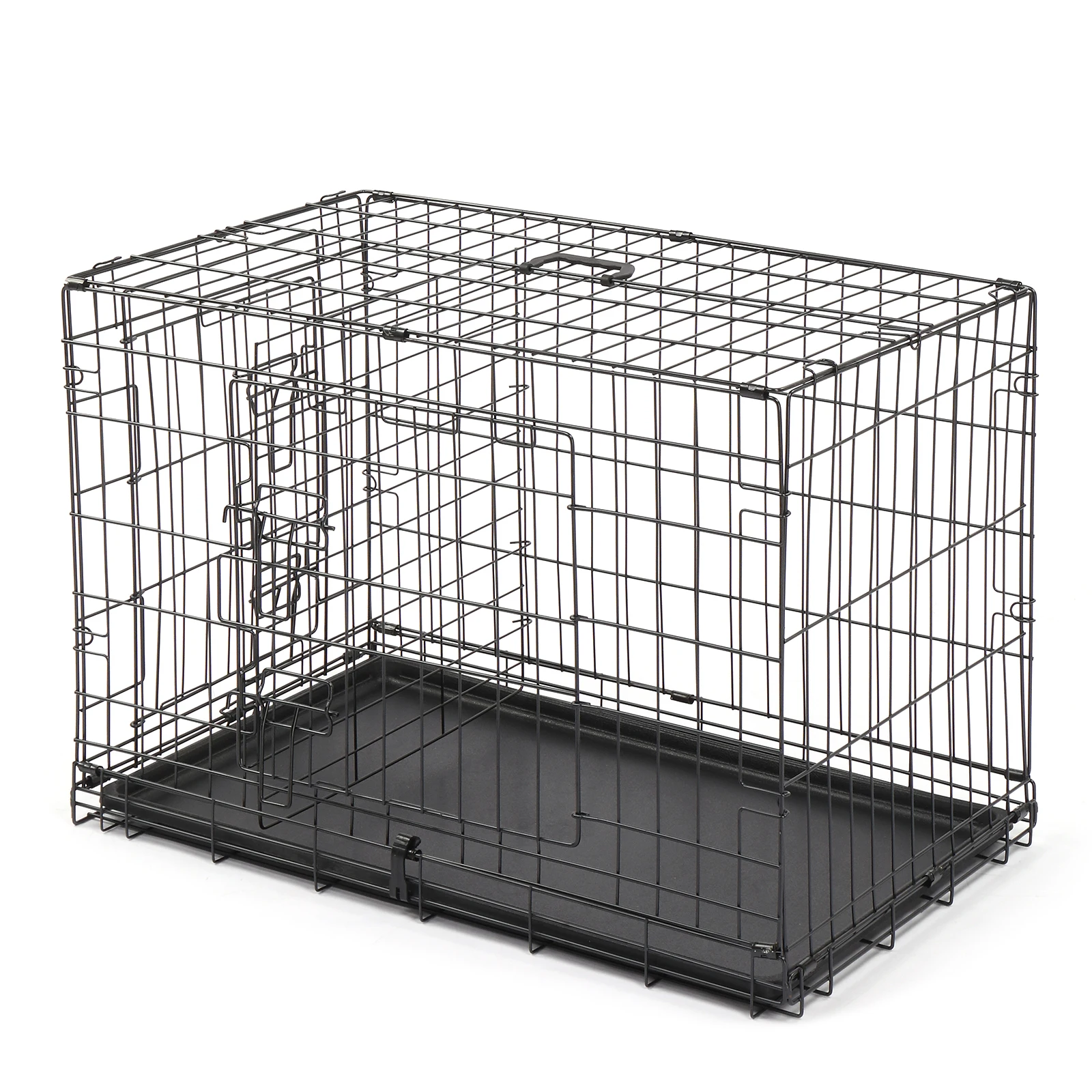 Have you ever noticed your dog always sleeps and relaxes under a table or in a corner? This Pet Cage is the perfect solution to make your pet feel more secure and confident. These premium quality metal pet crates are crafted using commercial-quality materials and superior manufacturing. The crates feature multiple doors that lock easily with a slide-bolt latch, with a durable black electro-coat finish. To set-up, simply unbox and fold open; no tools are required. Each crate features a lightweight, slide-out tray made of durable ABS plastic. Features: