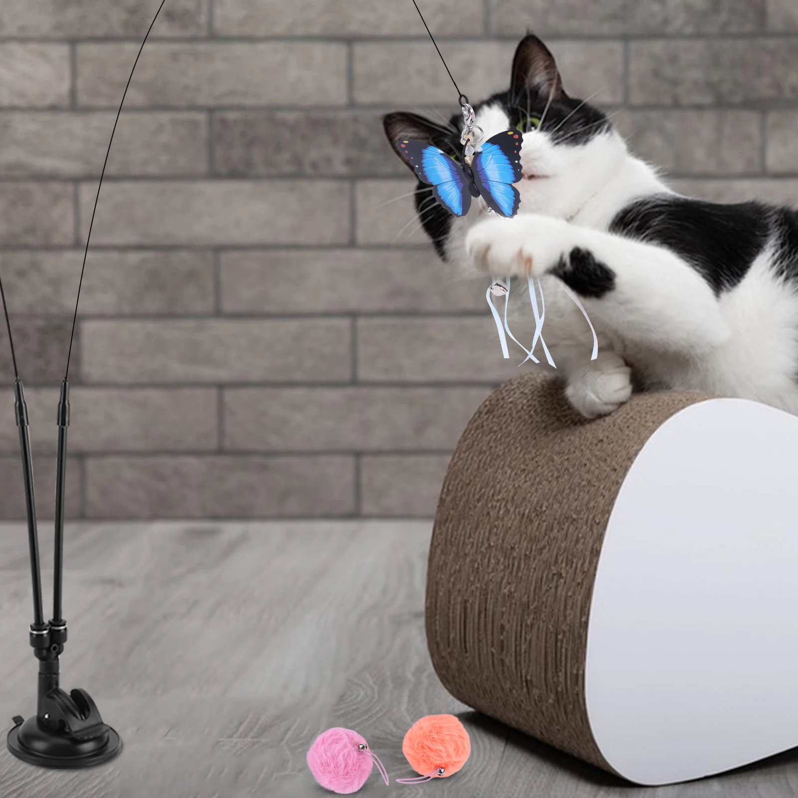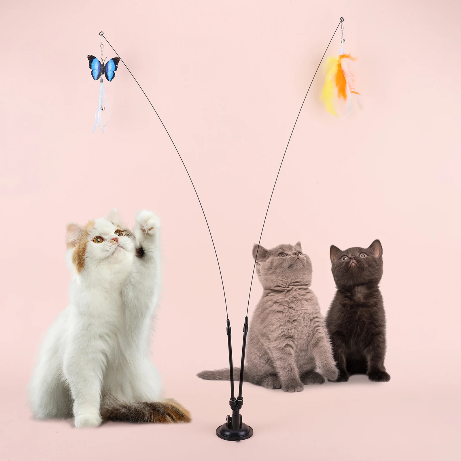 Pet Cat Toy Set Suction Cup Toy Set Detachable Teaser Stick Set Interactive Cat Toy for Cat Training Playing Accessories